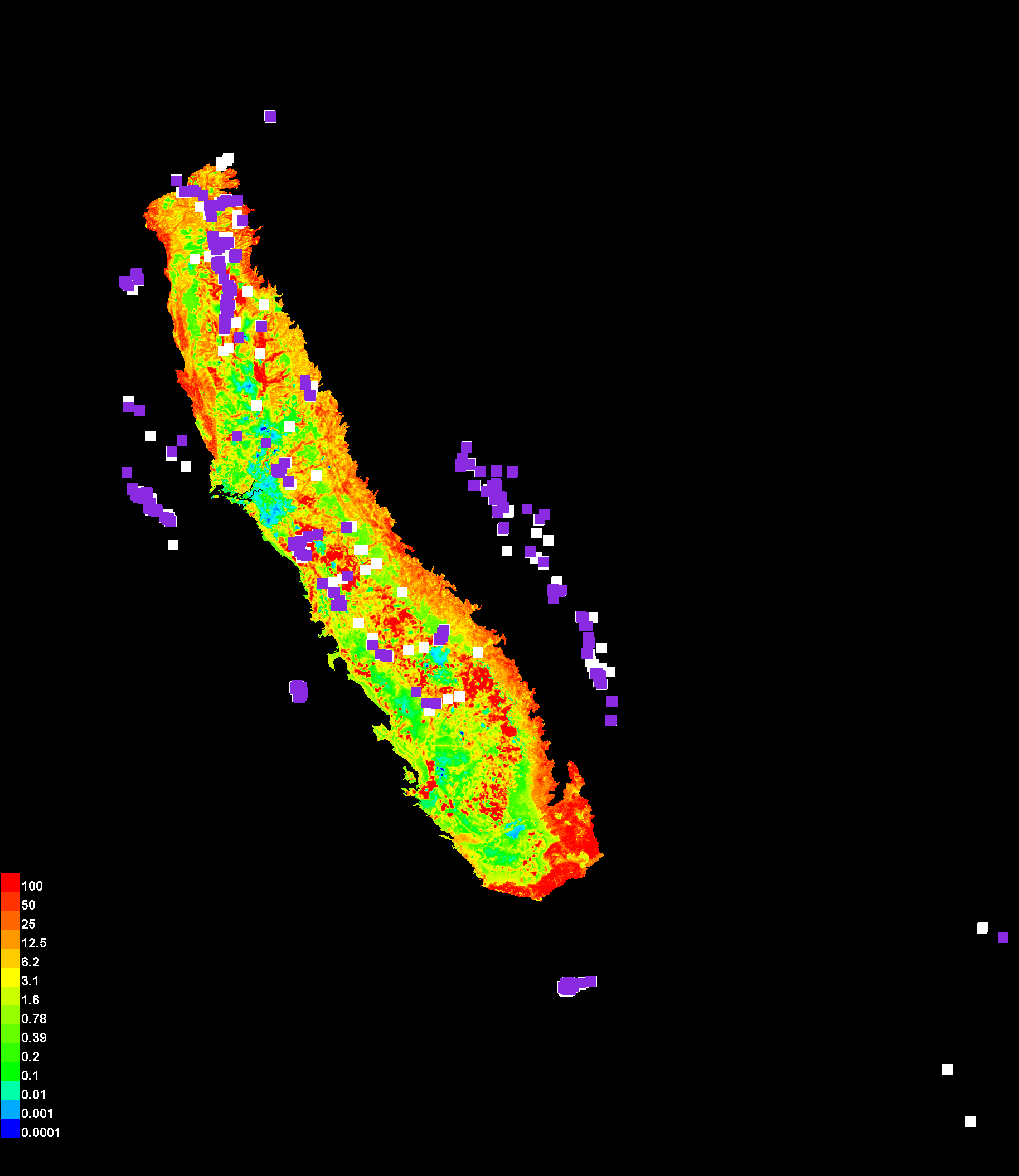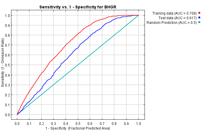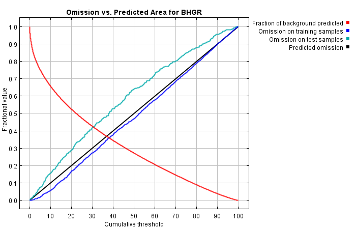 | Cumulative threshold | Description | Fractional predicted area | Training omission rate | Test omission rate | P-value |