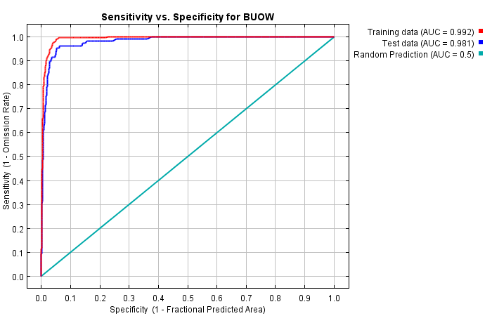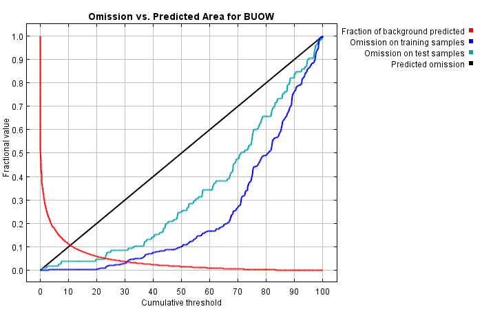 | Cumulative threshold | Description | Fractional predicted area | Training omission rate | Test omission rate | P-value |