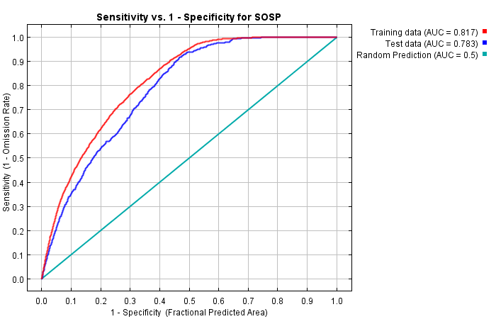 | 16.839 | Maximum training sensitivity plus specificity | 0.401 | 0.131 | 0.174 | 0E0 |