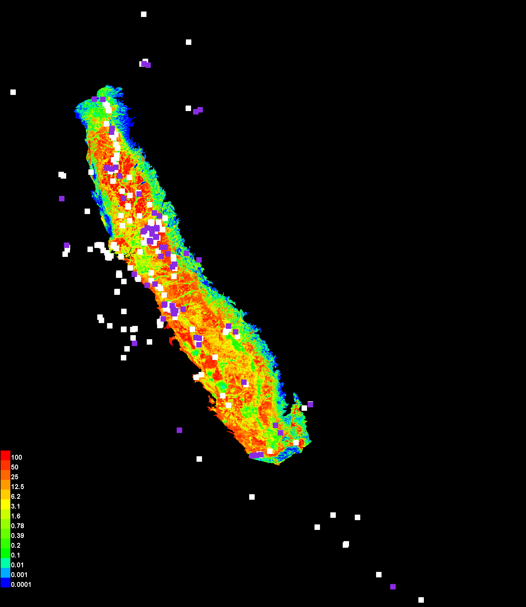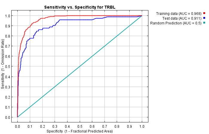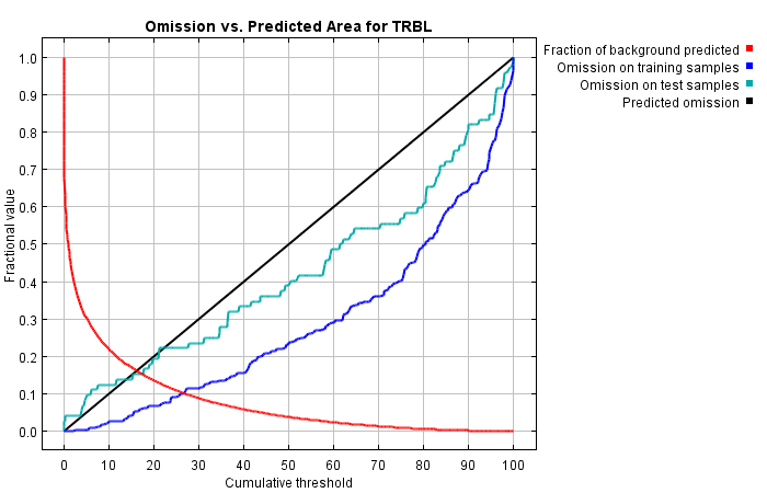 | Cumulative threshold | Description | Fractional predicted area | Training omission rate | Test omission rate | P-value |