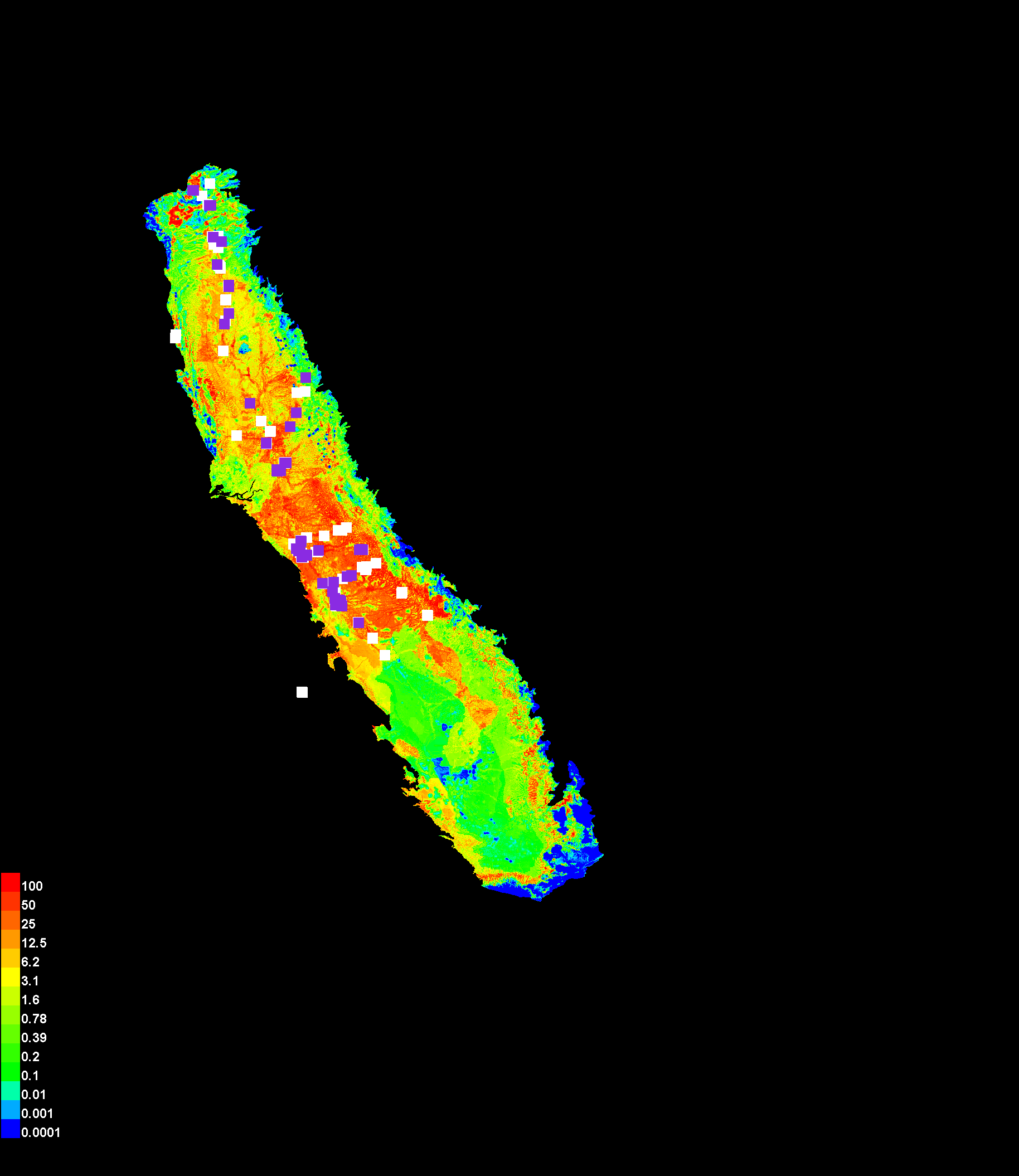 | Cumulative threshold | Description | Fractional predicted area | Training omission rate | Test omission rate | P-value |