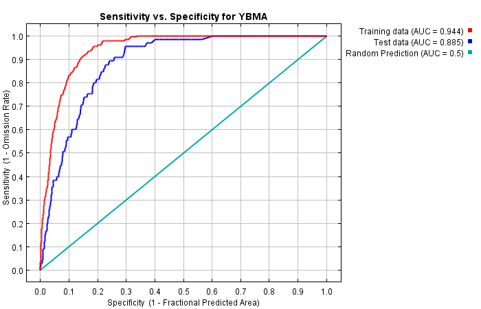| 13.131 | Minimum training sensitivity plus specificity | 0.186 | 0.046 | 0.215 | 9.944E-36 |